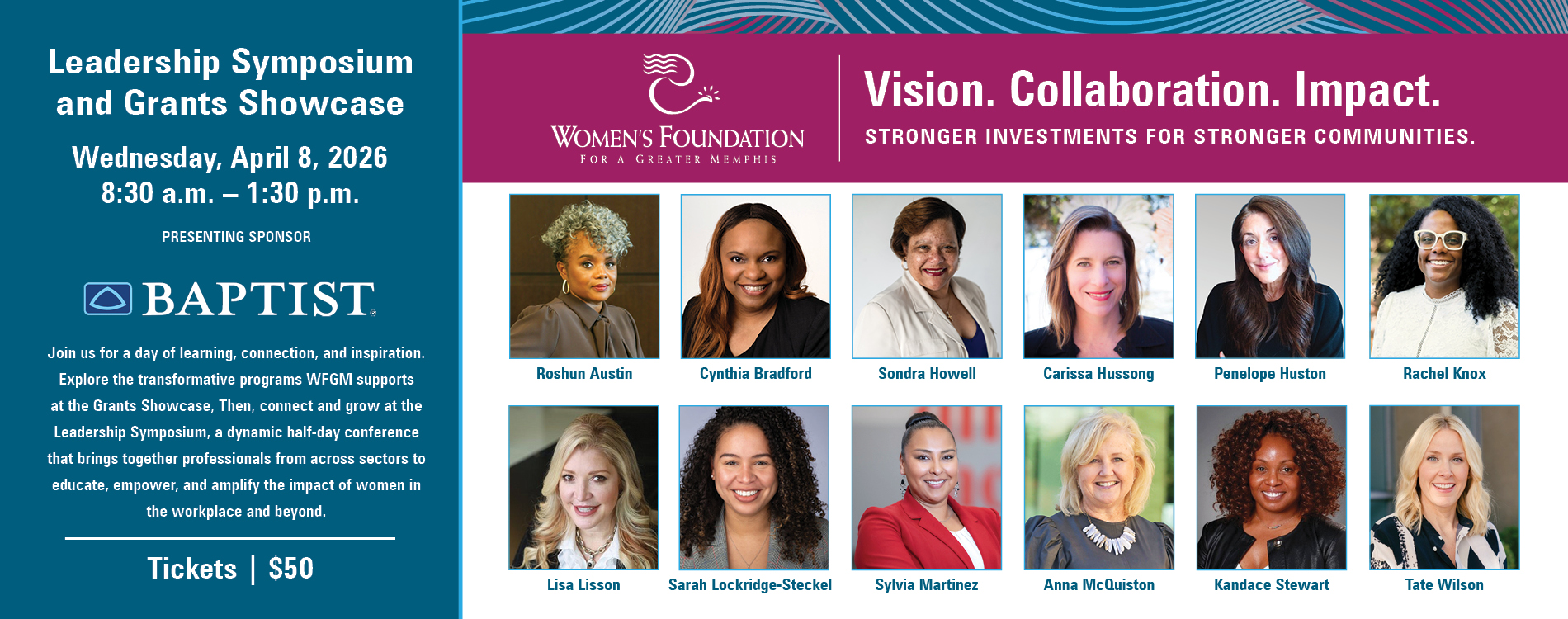 Join us for a day of learning, connection, and inspiration at the 2026 Leadership Symposium and Grants Showcase! Explore the transformative programs WFGM supports at the Grants Showcase, featuring our 36 Grantee and Community Partners advancing the economic and social mobility of women and families in Memphis.