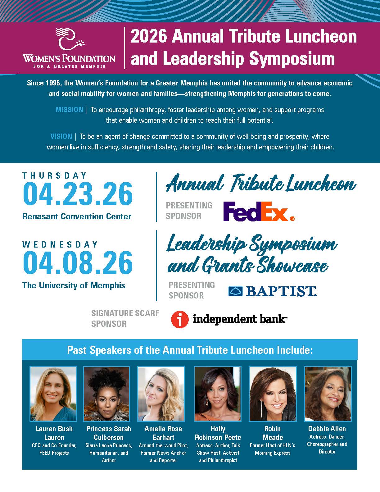 As a sponsor, you align with a trusted philanthropic leader and demonstrate a clear commitment to strengthening Memphis through strategic investments in women and families.